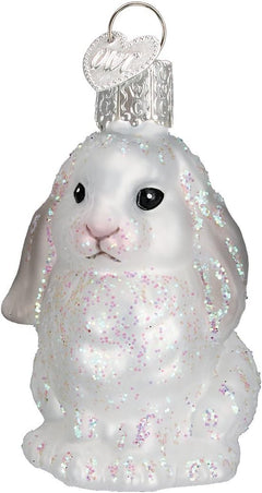 Old World Christmas White Baby Bunny Glass Blown Ornament for Christmas Tree, Handcrafted Holiday Decoration, Wildlife Animal Collection