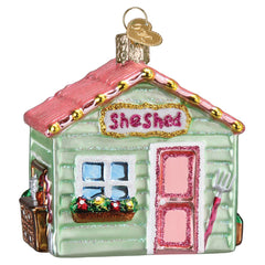 Old World Christmas She Shed Glass Blown Ornament for Christmas Tree, Handcrafted Holiday Decoration, Garden Collection