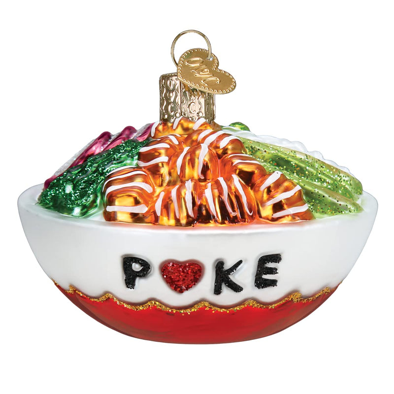 Features and Benefits:- Aloha Cheer: This hand-blown poke bowl ornament brings island warmth and festive flavors to your tree, a playful gift of tropical joy.