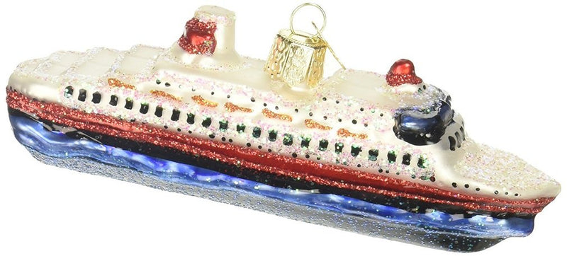 Old World Christmas Cruise Ship Glass Blown Ornament for Christmas Tree, Handcrafted Holiday Decoration, Travel Collection