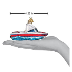 Old World Christmas Ski Boat Glass Blown Ornament for Christmas Tree, Handcrafted Holiday Decoration, Transportation Collection | 46101