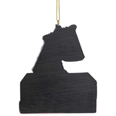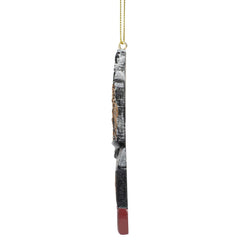 - Ornament is made of a durable resin material and hangs from a gold cord