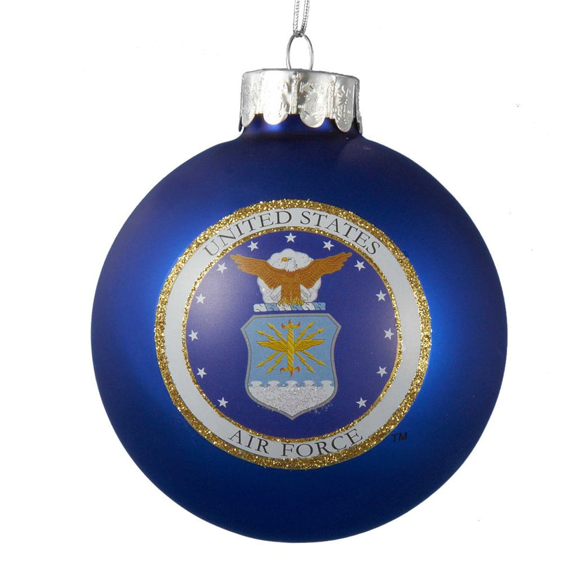 - Celebrate the holidays and our armed forces with this Kurt Adler 80mm Glass U.S. Air Force Ball Ornament. Its classic blue design features the United States Air Force emblem. The logo is trimmed in gold for an extra festive touch.