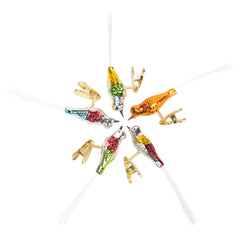 - Add a vintage touch to your holiday decor with this 4.5-Inch Early Years Glass Clip-On Bird Set of 5 from Kurt Adler. Part of Kurt Adler's Early Years collection, these ornaments each have a vintage-inspired design reminiscent of Kurt Adler's first glass ornaments. This set includes 5 beautifully detailed, colorfully painted glass birds that clip onto your tree for a nature-inspired look.