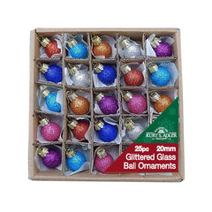- These 0. 78-Inch Glitter Glass Ball Ornaments, 25 Piece Set from Kurt Adler feature dainty ornament balls in glittery colors including shimmery shades of red, blue, silver, orange, pink, and purple. Perfect for showing holiday spirit when space is limited.