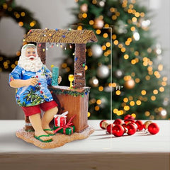 - Celebrate Christmas at the beach this year with this Santa figure from Kurt Adler! Santa is kicking back at the beach Tiki bar in a Hawaiian shirt, red shorts, flip Flops, and Sunglasses perched on his head. He has a tropical drink in his hand and is sitting at a Christmas light-adorned Tiki bar, also adorned with garland and wrapped gifts.