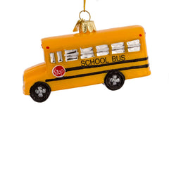 - This Noble Gems™ school bus ornament from Kurt Adler is a charming addition to any holiday decor or Christmas tree. This ornament features a classic bright yellow school bus, complete with silver windows, read a white lights, and a stop sign.