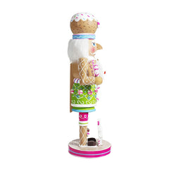 - This 16-Inch Wooden Gingerbread Nutcracker from Kurt Adler is a fun and unique addition to any holiday décor or nutcracker collection. The nutcracker features various christmas desserts and peppermint candy detailing throughout. In one hand is a candy cane and the other a plate of gingerbread cookies. A gingerbread house stands at the base. Perfect for the person with a sweet tooth in your life!