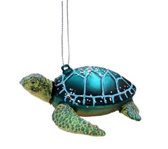 - Add a touch of oceanic charm to your holiday decor with this exquisite Kurt Adler sea turtle ornament. This ornament, crafted with intricate details, features a beautifully designed sea turtle with a shimmering, glittery shell in vibrant shades of teal and blue. The turtle’s textured flippers and lifelike face add to its realistic appearance, while the iridescent glitter accents give it a festive sparkle. Perfect for ocean lovers or anyone looking to bring a coastal theme to their Christmas tree, this ornament is sure to be a standout piece in your holiday collection. Hang it on your tree or use it as a unique decorative accent in your home.