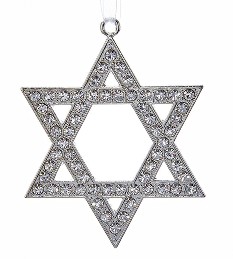 - This metal Star of David ornament from Kurt Adler is a beautiful addition to any holiday décor. This simple silver star of David is perfect for Jewish families or interfaith families wishing to celebrate Hanukkah. Inside the star there are clear rhinestone adornments. Perfect for interfaith families wishing to honor both holidays. Made of metal | Perfect for interfaith families | Hangs from a white ribbon More Information UPC 086131372650 Split 6 Case 48 Color Silver Item Size 3.5in Packaging Hang Tag