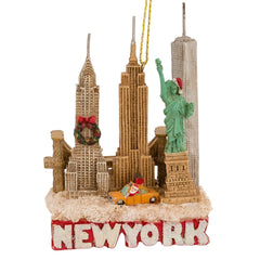 - This 3.25-inch New York City ornament by Kurt Adler is a beautiful way to commemorate the great city of New York while celebrating the holidays. Its resin 3D design includes all of the greatest landmarks and icons of NYC resting atop the name of the city in large, glittery red and blue lettering.