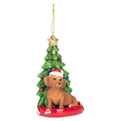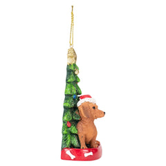 Kurt S. Adler Red Dachshund Wearing Santa Hat with Christmas Tree Ornament, Resin, C7615RDA New | C7954RDA