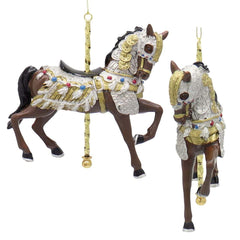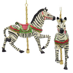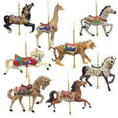- Add a fun, whimsical addition to any holiday décor with this assortment of five carousel ornaments from Kurt Adler. Each ornament is beautifully and intricately designed after a carousel animal. Each of the animals in the assortment have unique saddle designs with glitter accents. Read more More Information More Information UPC 086131272349 Split 16 Case 64 Color Multicolor Item Bulb Count 0 Item Size 5“ Packaging Polybag With Rat Tail Made of resin Includes 5 horses, 1 giraffe, 1 zebra & 1 tiger Assortment of 8 ornaments