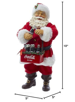 - Add a touch of nostalgia to your holiday décor with this 10" Santa Opening Coke Tablepiece from Kurt Adler. Santa Claus is featured here in his signature red and white suit. He is holding six pack of Coca-Cola bottles while opening up a bottle for himself to enjoy.