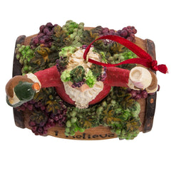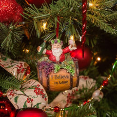 - The Kurt Adler 4-Inch Polyresin Santa on Wine Barrel Ornament is a cute and charming ornament. Santa is drinking wine on top of a wine barrel.