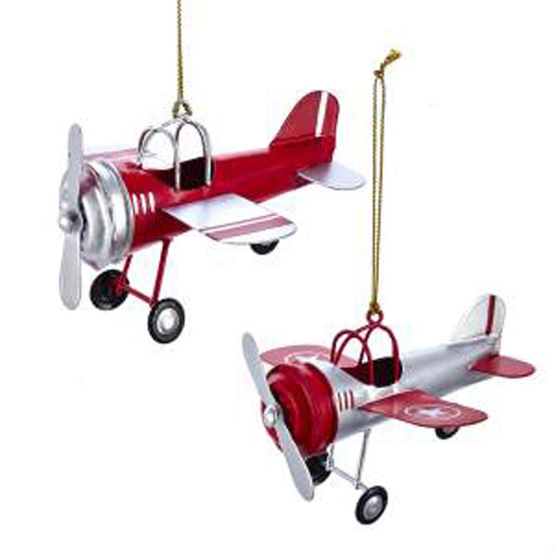 Product Description- Kurt Adler Vintage Red Silvertone Airplane 4 inch Metal Decorative Hanging Ornament, Sold as a Set of 2