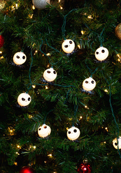 - This 10-Light Nightmare Before Christmas Jack Skellington Light Set from Kurt Adler is a fun and unique addition to any holiday home décor. This light set features the head of Jack Skellington with a smile on his face and a raised eye and bat bow tie. The set consists of 30" lead wire, 12" spacing, and an end connector all UL approved. The perfect gift for a fan of the Nightmare Before Christmas.