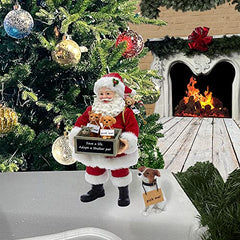 - Part of Kurt Adler's Fabriché collection, this 10. 5-inch Adopt-a-Pet Santa with Dog from Kurt Adler is a fun and festive addition to any holiday décor. Santa Claus is featured here wearing his traditional red-and-white suit holding a wooden crate filled with three small animals that reads "Save a life. Adopt a shelter pet". Santa also has a sack with a puppy and candy cane slung on his shoulder. This two piece set also includes a dog in the sitting position with a "pick me! " sign.