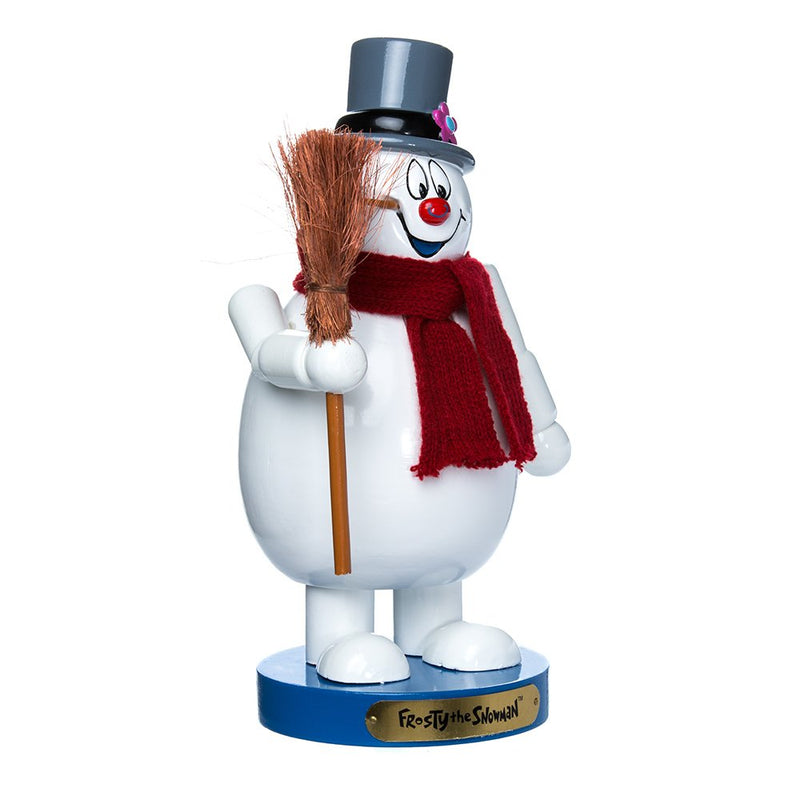 - This 10" Wooden Frosty the Snowman Nutcracker from Kurt Adler is a fun and festive addition to any holiday décor. True to the 1969 animated TV special, Frosty is featured here wearing the magician's top hat and a red scard. He is holding a small broom and has a pipe in his mouth.