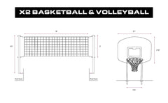 Global Pool Products X2 Basketball/Volleyball Set (16'/20') With Net and Ball, No Anchor