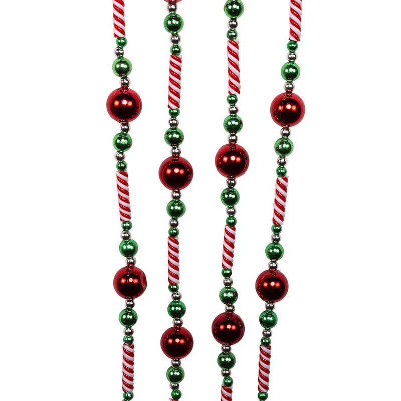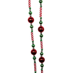 - This Kurt Adler 8-foot candy and red ball bead garland is a fun, festive way to add to your holiday décor! The plastic design features an alternating pattern of festive metallic green, shiny red, and candy cane-striped beads that will surely add a sweet and scrumptious touch whether part of your tree decor or used elsewhere in your holiday display.