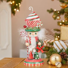 - Hollywood Nutcrackers is a whimsical collection of nutcrackers created exclusively for Kurt S. Adler, Inc. and features an assortment of designs that put a unique, vibrant, memorable twist on traditional nutcrackers. This 12-Inch Hollywood Cupcake Swirl Hat Nutcracker features a red, white and green glittered design with red and green glittered elf shoes and a red, white and green glittered cupcake hat. In one hand he is holding a red and white peppermint staff and in the other he holds a miniature glittered decorated wreath. He stands on a glittered red base with green and red glittered accents.