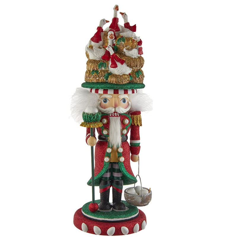 - Hollywood Nutcrackers is a whimsical collection of nutcrackers created exclusively for Kurt S. Adler, Inc. and features an assortment of designs that put a unique, vibrant, memorable twist on traditional nutcrackers. This 18-inch Six Geese A Laying Nutcracker is part of the 12 Days of Chritmas collection. It features six geese atop a gold glittered nest hat with a basket of eggs in one hand and an egg topped staff in the other. The nutcracker stands on a red and green glittered base decorated with white eggs. This nutcracker is a stunning addition to any holiday décor