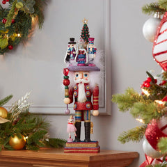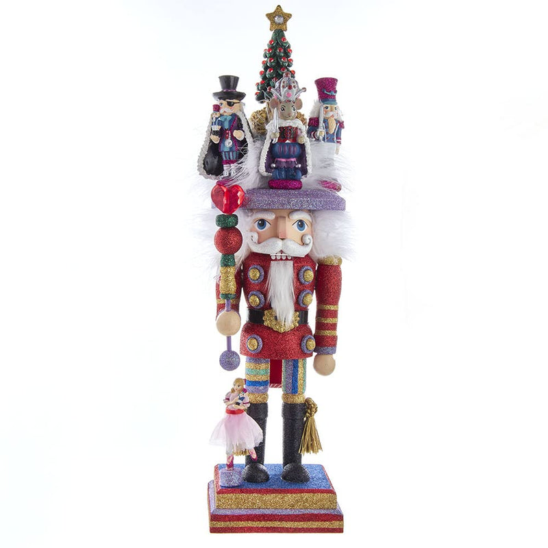 - Designed by renowned artist Holly Adler, Hollywood Nutcrackers is a whimsical collection of nutcrackers created exclusively for Kurt Adler. This 18-inch Nutcracker Suite Nutcracker features a festive glittered color scheme, topped with a beautiful Christmas tree hat surrounded by the main characters of the beloved ballet. In one hands he holds a heart topped glittered staff and is standing on a matching glittered base with Clara at his feet.