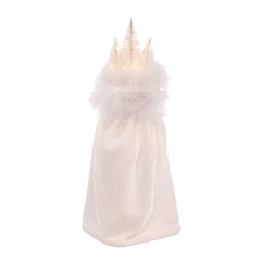 - Festive & Fun: Features a battery-operated Winter White King Nutcracker in all white, holding a staff and lantern, standing on a light-up base of glittered white houses, with a hat decorated by bottle brush trees, snowflakes, and clear gems.