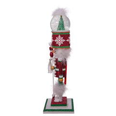 - Features a delightful water globe atop the nutcracker’s hat, featuring a wintry scene inside that captures the charm and joy of the holiday season.