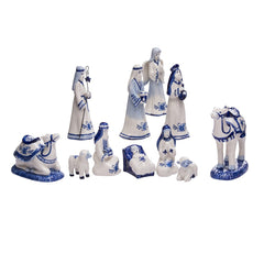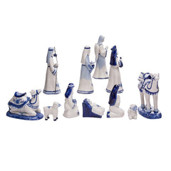 - The Kurt Adler 1.97-Inch by 6.7-Inch Porcelain Delft Blue 11-Piece Nativity Set is a timeless and beautiful nativity set. It can be used year over year. The blue and white pattern is very classic.