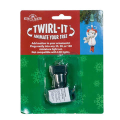 - This 2-Inch Twirl-It Motor Pigtail Ornament Twirler from Kurt Adler is a fun, unique way to add motion to your Christmas tree! Each pigtail easily plugs into any incandescent 35, 50, or 100 light set. To hang and twirl your favorite Christmas tree ornament, take off a light bulb from your light set so the Twirl-It can be put inside it. Place any ornament on the hook of the Twirl-It for a spinning motion. When the lights are turned on, the Twirl-It spins the attached ornament. When using Twirl-It with a Pre-lit Tree check your user manual to make sure the tree is lit with Mini-Incandescent Lights, NOT LED lights. Mini LED bulbs are not compatible with this Twirl-It product, but often are the same shape as traditional looking mini-incandescent bulbs.