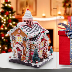 - This 14-Inch Battery-Operated Light-Up Gingerbread House from Kurt Adler is a fun, festive way to add to your holiday décor! This gingerbread house-style decoration has beautifully bright, colorful detailing, including white icing and frosting, gum drops, candy canes, peppermint candies and gingerbread men.