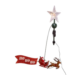 19.7“ 5L Warm White LED Star With Rotating Santa and Sleigh Treetop | AD3001