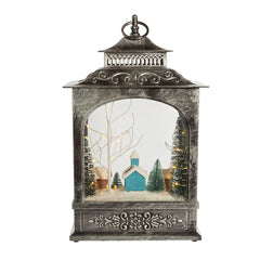 - This 15-inch battery-operated LED musical Christmas village lantern from Kurt Adler is a charming addition to any holiday décor. This lantern features a Christmas village winter scene with snow capped trees. When switched on, 37 warm white LED lights turn on to light up the village and eight assorted Christmas tunes play.