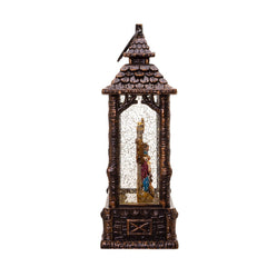 - This 11-inch battery-operated LED nativity water lantern from Kurt Adler is a wonderful addition to any holiday décor. This lantern features a black rustic base with a traditional Nativity scene. When switched on, a warm white LED spotlight falls on the Nativity scene and glitter swirls around for a serene scene.
