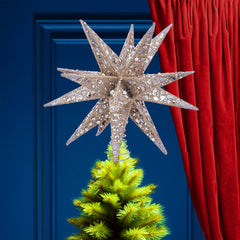 - Add the perfect finishing touch to your Christmas tree with this 12“ champagne and silver glitter Moravian star treetop from Kurt Adler. Its traditional multi-point Moravian star design is unlit and is finished in champagne and silver glitter for an extra festive touch.