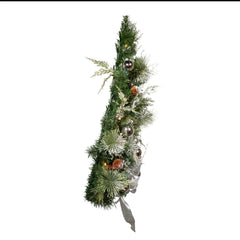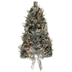 - This Kurt Adler 26“ Pre-Lit LED Pinecone Wall Tree is a beautiful, classic way to add to your holiday décor. Ideal for limited spaces, this half tree has a flat back and hangs on the wall. Pre-Lit with 30 LED lights, it features a frosted snowy design with silver ball ornaments and pinecones with a silver ribbon bow at the bottom. Tree stand is not required or included.
