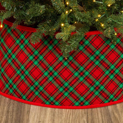 - Bring classic holiday charm to your Christmas tree with Kurt Adler's 24“ Plaid Tree Collar. Featuring a timeless red and green plaid pattern, this tree collar adds a warm, rustic touch to your holiday décor while neatly concealing the tree stand. Measuring 24 inches, it fits most tree bases, creating a cozy, polished look that complements both traditional and farmhouse styles. Ideal for those who love classic holiday designs, this plaid tree collar adds a festive, nostalgic feel to your seasonal setup and enhances the beauty of your holiday centerpiece.