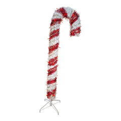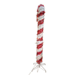 - Kurt Adler's 5' pre-lit red and white tinsel candy cane is a fun and festive addition to any home or office holiday décor. This red and white candy cane features 220 red and 220 white LED lights on a clear wire and stands 5 foot tall with a white metal folding base.