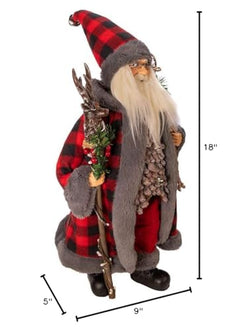 - This 18-inch Kringle Klaus Red and Gray Santa from Kurt Adler is a fun and festive addition to any holiday décor. Part of the Kringle Klaus collection, Santa is featured here wearing a plaid red and black robe with grey fur trim and matching hat. In one hand is a holly berry staff, and in his other hand is a sack filled with Christmas décor.