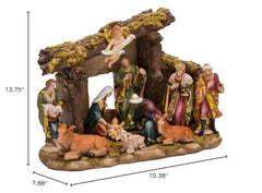 Kurt S. Adler Resin Stable- Kurt Adler Nativity Set with Figures, Brown, 10.38in, 11-Piece | N0296