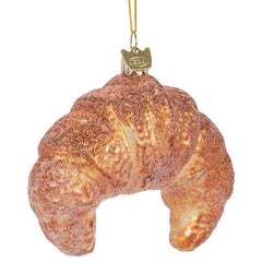 - Perfect for the foodie in your family, this Noble Gems™ glass croissant ornament is a fun and festive addition to your home or holiday décor. This ornament is expertly crafted from glass and features copper glittered accents. Part of Kurt Adler Noble Gems™ collection | Made of glass and paint/mica | Hangs from gold string | Perfect for any holiday décor More Information UPC 086131536168 Split 8 Case 32 Color Brown Item Size 4in Packaging Bulk Pack