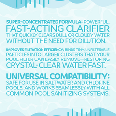 Pool Season® Super Water Clarifier is a super-concentrated, fast-acting water clarifier.