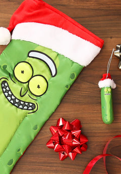 - DescriptionThis Rick and Morty stocking from Kurt Adler is a unique addition to any holiday décor. It features Pickle Rick with a Santa hat.