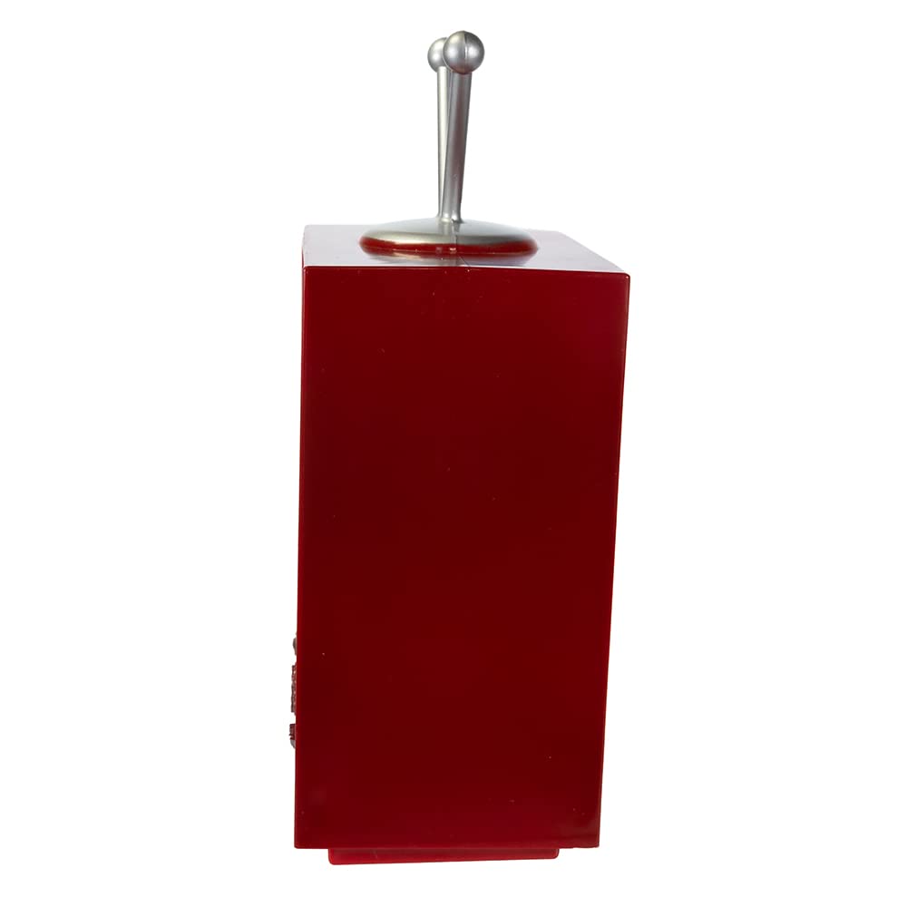 This 8.5-Inch Battery-Operated Rudolph and Santa Musical TV Table Piece with motion from Kurt Adler is a charming addition to any holiday décor. This television water lantern features Santa and Rudolph with a decorated Christmas tree and presents with an antenna. When switched on, it plays the song "Rudolph the Red-Nosed Reindeer", a spotlight falls on the tree and glitter swirls around for a snowy scene. This item requires 3 AA batteries (not required).