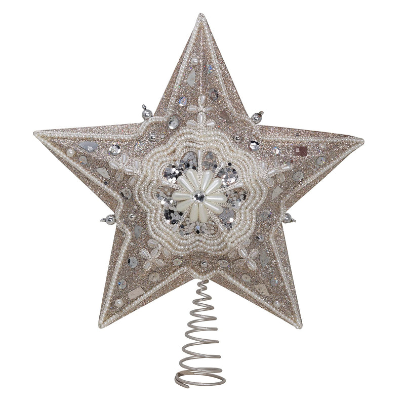 - This Kurt Adler 13.5-inch Star Treetop with Ivory Pearls and Platinum Glass Glitter is a beautiful and elegant addition to any Christmas tree décor. This classic 5 point star treetop includes a variety of pearls and platinum glass glitter all coming together to complete an elegant treetop. The addition of beaded intricate designs elevates this treetop to the next level of uniqueness!