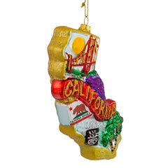 - This Kurt Adler glass California ornament is a fun, festive way to add to your holiday décor, especially if you come from or frequent the state of California! Its beautiful glass design is the shape of the state with bright details featuring recognizable symbols of California: the golden Gate Bridge, palm trees, a film director's clapper board, the Hollywood sign, grapes and the California Republic flag