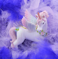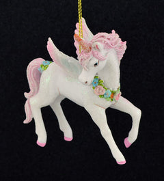 - Create a sense of fantasy on your Christmas tree with our Magical White and Pink Unicorn Holiday Ornament. Glittery accents give it a little sparkle. You'll look forward to decorating your holiday tree with it year after year. It would also look good as whimsical decor in your home all year long; just think about how cute it would look decorating your daughter's bedroom.