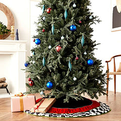 - Complete your Christmas tree decor with this Kurt Adler 52-Inch Black and White Checkered Treeskirt. With its black and white checkerboard border design and layers of black and red in the center, this tree skirt is sure to lend a fun and unique style to your tree!